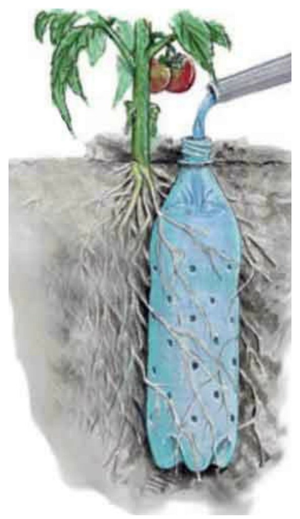 Ok so grab your 2 liter bottle and poke holes in it,now keep in mind that the more holes you have the faster it will drain so if your not going for that and want a slow drip create less holes all around the bottle now plant this in between your plants I suggest 1 bottle per plant and place in ground when your planting your tomatoes so the young roots get used to retrieving the water underground. Do no replace the cap,and when it’s time to water you fill the bottle that you have planted!Nice 👍 right! Using this Deep watering method will ensure that your tomatoes are getting the water they need as sometimes the traditional way isn’t enough depending on the conditions.I also have done some research on if it was healthy to be planting plastic bottles next to my vegetables and all the water bottles and soda bottles do not contain BPA’s according to the facts about bpa.org website.